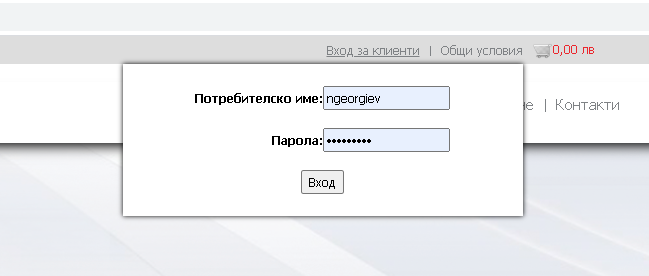 - При правилно въведено име и парола, ще се зареди информация за текущото състояние на ползваните услуги и текущите задължения.